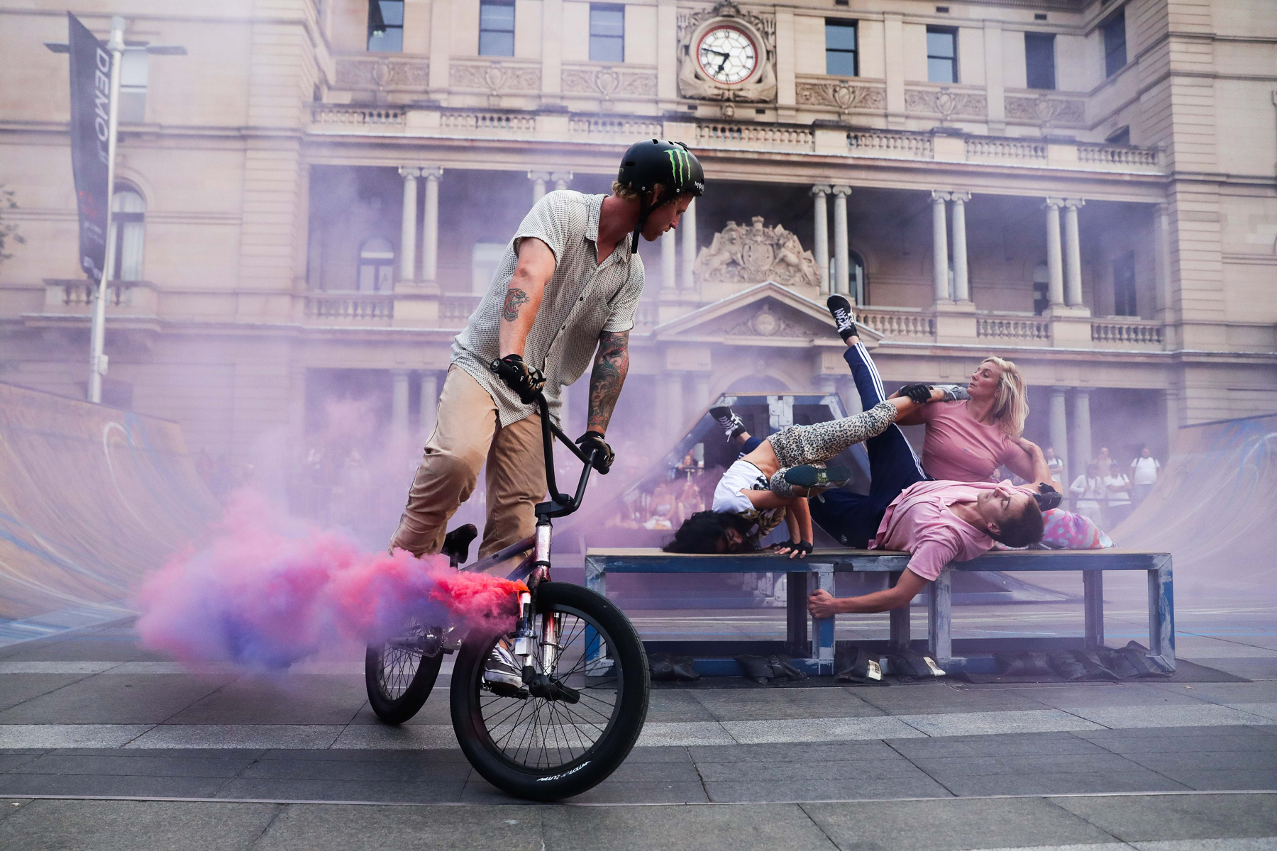 Branch Nebula parachutes into the middle of the city with a team of champion skaters, BMXers, parkourists and dancers. Featuring tightly choreographed mayhem within a compact set of skate ramps, DEMO is a spectacular performance that showcases the outstanding talent of street-styles.